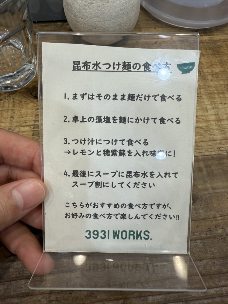 麺がなくなると残った昆布水をつけ汁に全投入してスープ割。贅沢なスープ割もあっという間にに食べてしまいました。スープまで残さず飲んでも罪悪感の残らないとても美味しいラーメン屋さんでした。ぜひラーメン好きな方はたべにいってみてください!!