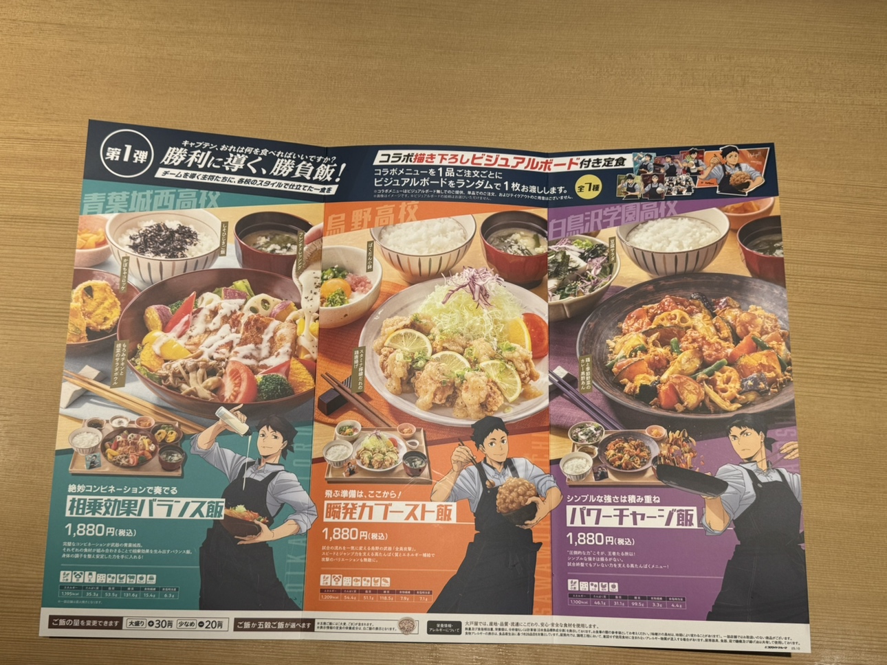 『週刊少年ジャンプ』で連載をしていた、アニメ化もされた『ハイキュー!!』のコラボが始まり、そのコラボメニューを食べたい、とリクエストがあり、行ってまいりました。