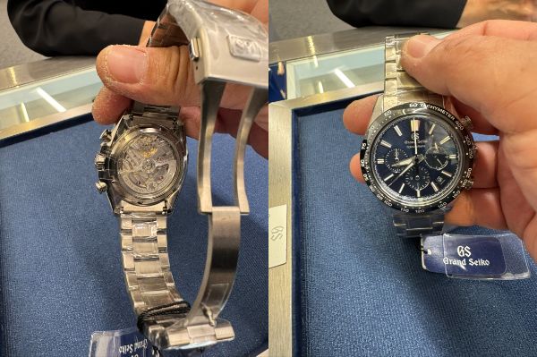 先日西武百貨店の時計売り場に行きました。西武は今店舗改装中ですが時計売り場のブースはあり、グランドセイコーのテンタグラフを見せて頂きました。非常に見た目は重厚感がありますが、ブライトチタンを使っているため軽くできています。